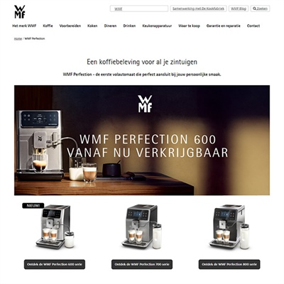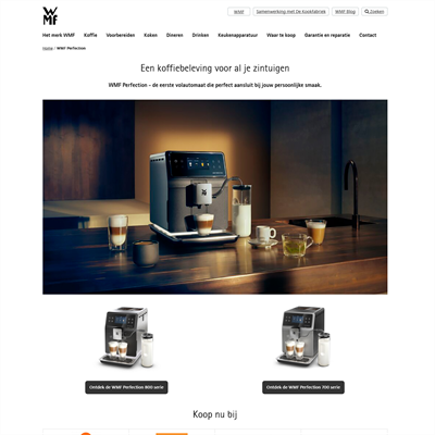 Website WMF promotie Voor WMF hebben we deze WMF Perfection promowebsite opgezet. WMF Perfection - de eerste volautomaat die perfect aansluit bij jouw persoonlijke smaak. Website WMF promotie