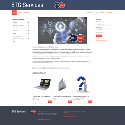 BTG Services: webshop BTG Services is de serviceorganisatie van de Nederlandse Branchevereniging ICT en Telecommunicatie Grootgebruikers (BTG). Exclusief voor leden van BTG leveren zij diensten en inkoopvoordelen... BTG Services: webshop