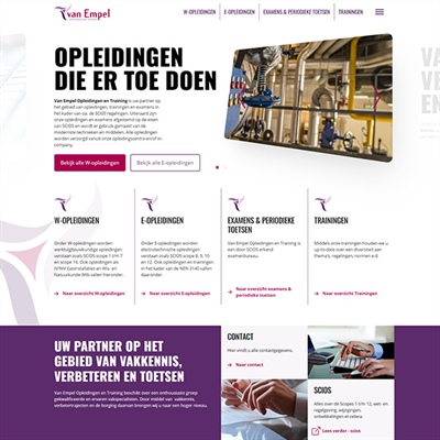 Website Van Empel opleidingen BitWise heeft deze website gemaakt met het CMS DotNetNuke, van concept tot realisatie. Ook maakt de website gebruik van een koppeling met onze ChainWise cursusplanner. Website Van Empel opleidingen