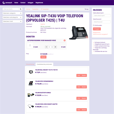 Webshop Enreach Enreach levert innovatieve VoIP-, data-, mobiel- en hostingdiensten voor het resellerkanaal en zijn uniek in de ontzorging van hun partners. Webshop Enreach